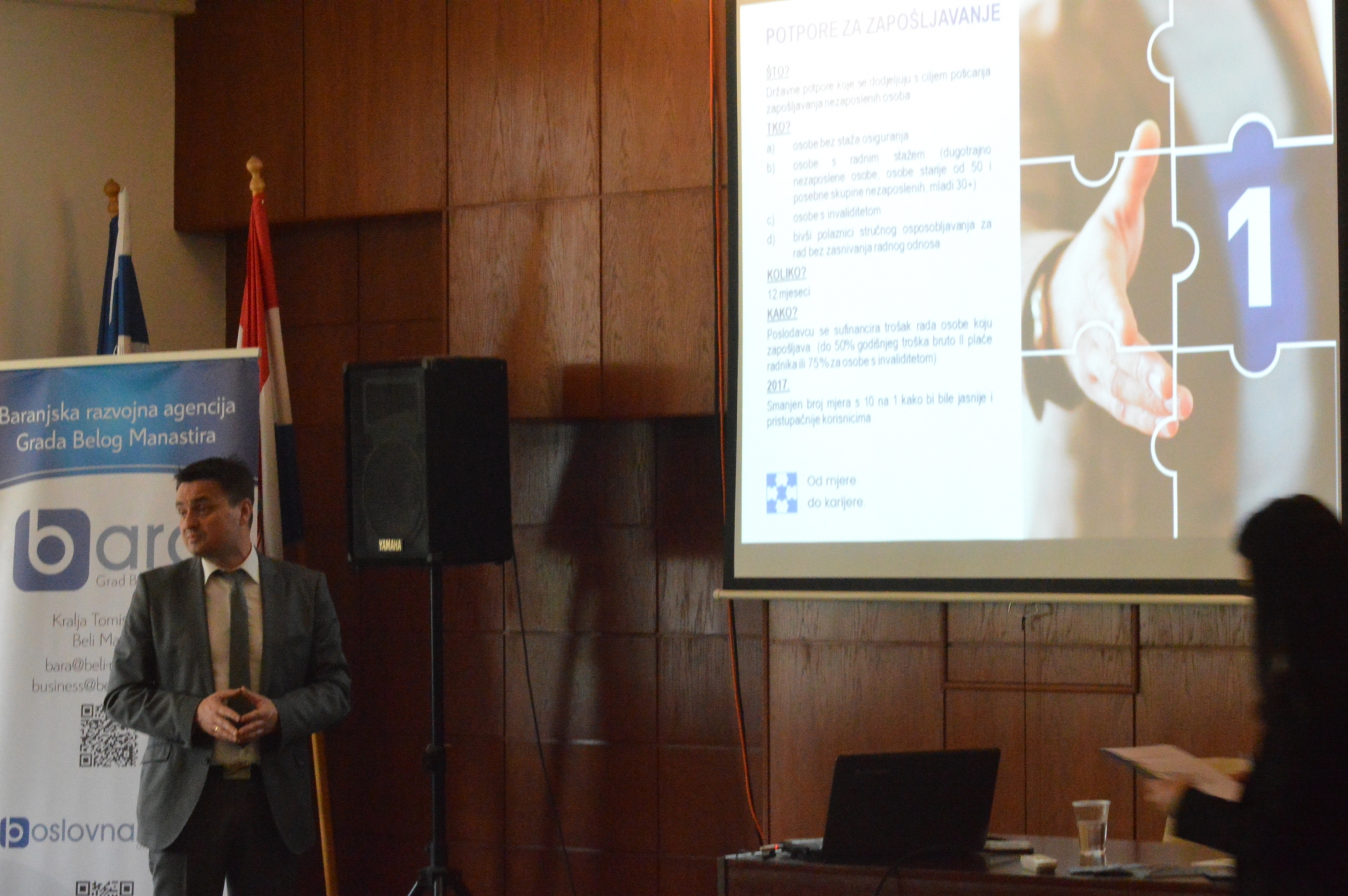 U velikoj vijećnici Grada Belog Manastira dana 26. svibnja 2017.g. od 10 do 12 sati Baranjska razvojna agencija Grada Belog Manastira i Hrvatski zavod za zapošljavanje, Regionalni ured Osijek, Ispostava Beli Manastir održali su predstavljanje mjera aktivne politke zapošljavanja.